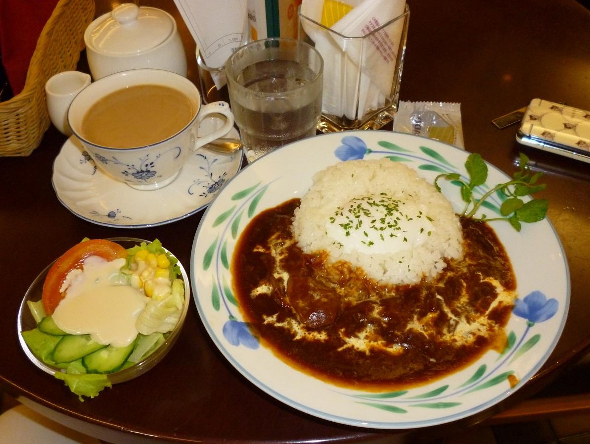 次の電車までに時間があったので食事を。駅内の喫茶店で出しているハヤシライスです。卵入りをいただいたのは初めてですが、オムライスを思い出す味になることが判明。カレーよりも自然に味わえました。