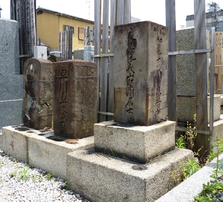 11:00、旧本圀寺墓所へ。鳥取藩の本圀寺事件の被害者の藩士3名の墓所がここにあります。また、伊東甲子太郎の剣の師匠、金子健四郎の墓もあります。ほかにも旗本の墓が2基、掛川藩士の墓も目立ちます。