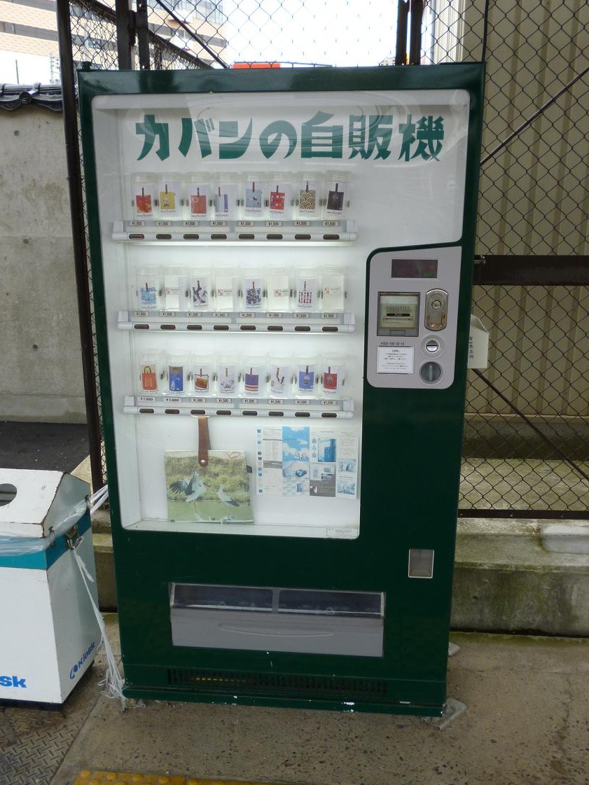 11:18、豊岡駅に到着。面白いのは鞄製造がさかんな場所です。なのでこんな自販機が設置されています。