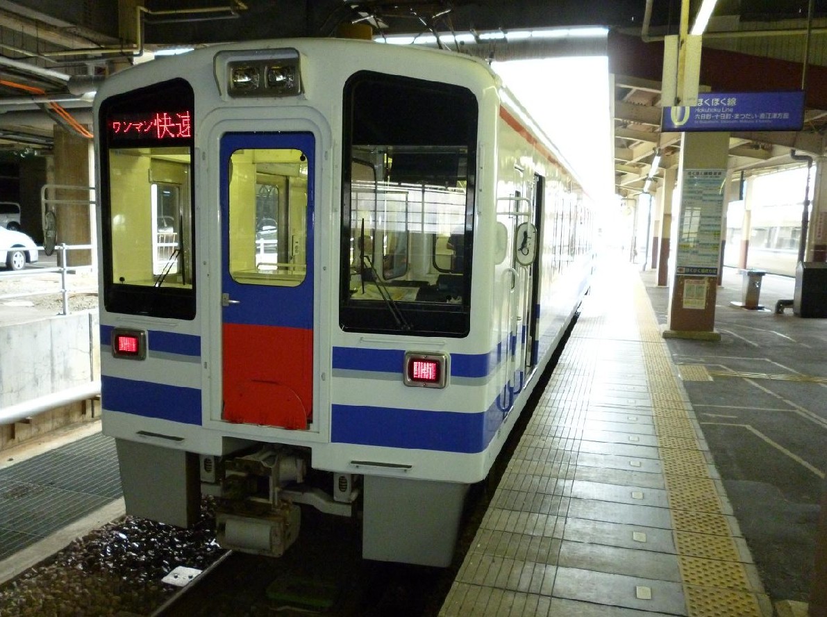 14:13、今回の台風でサンダーバードが運休のため鈍行に乗車。なんと昔懐かしい電車でした。かなり古いです。なにが凄いって、発進しようとすると前後左右、かなり車体が揺れるのです。昔幼少の時にこの電車に乗った記憶があります。昔はビュッフェがあり、蕎麦屋だった記憶があります。北総新選組の本体、交通文化連盟の方に批評していただきたいものです(笑)