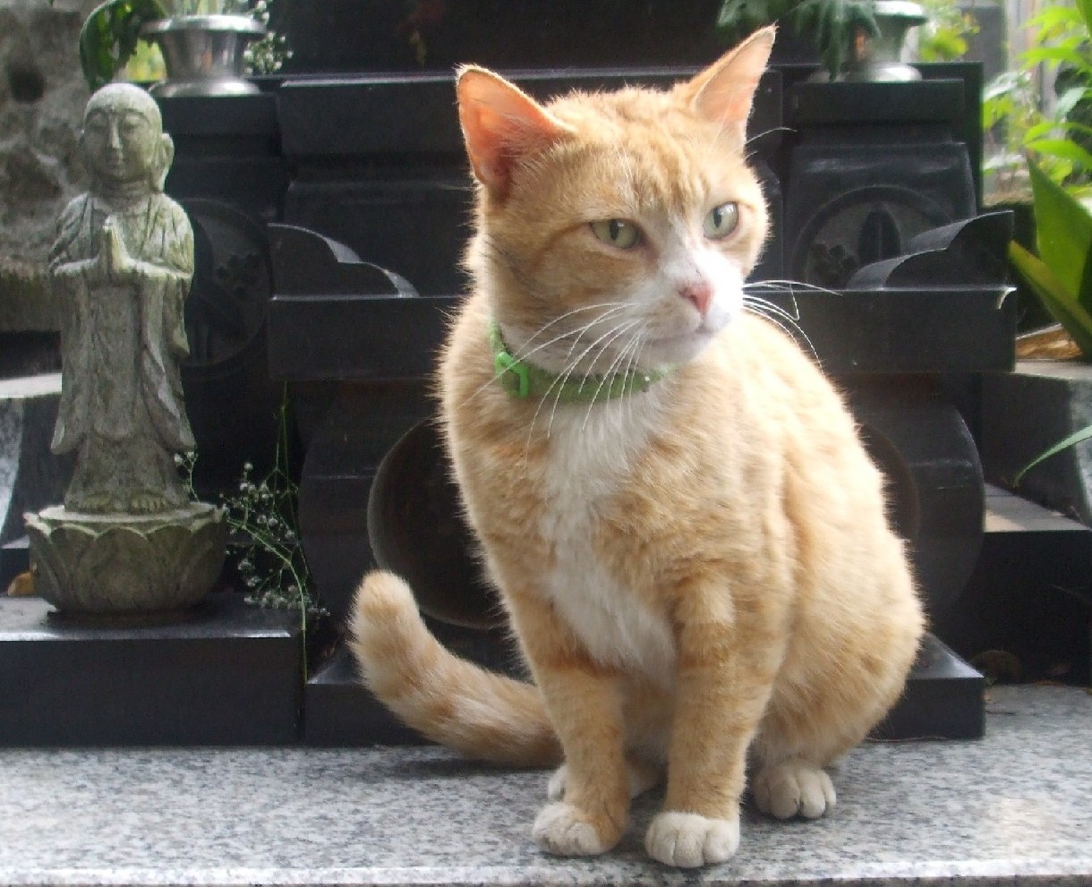仏像前で不敵な顔をしているのがボス格です。ふにゃほら第1号ですが、右手を2箇所、ねこパンチで負傷しました(汗)