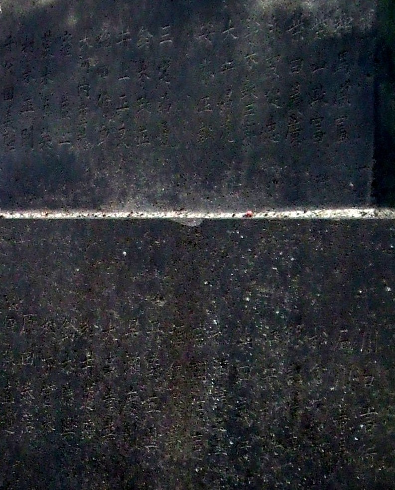 この石塔はご当主だった茂徳が亡くなった際、旧一橋家有志によって建立されました。さきほど申しましたとおり、門扉が閉められておりますので全角度は確認できませんが、正面等に旧家士たちの名前が彫られています。見ずらいですが、上段一番右側に名前が彫られている相馬胤冨は結城戦争で処刑された彰義隊相馬翁輔の実弟です。