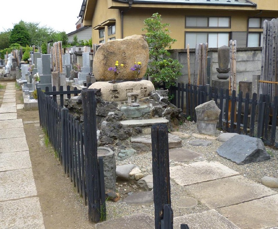 新門辰五郎の墓所です。なんか板塀が黒門をイメージしています。中に中村屋の墓碑も見かけられます。縁故なのでしょうか?見たところ江戸期の墓碑でした。この墓地のなかで1,2を争う立派な墓所だということは言うまでもありません。