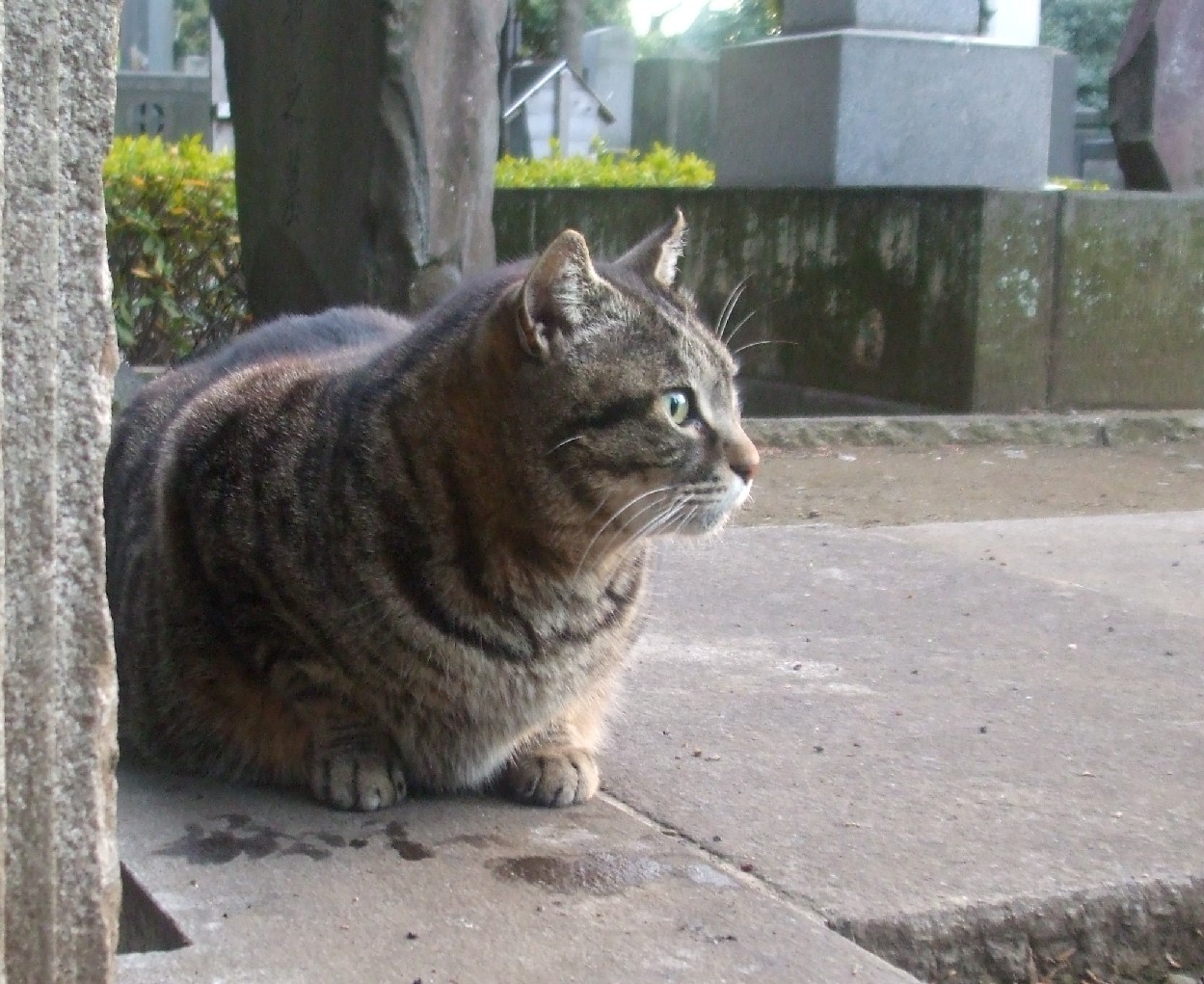 このクロトラがボス格のようです。ほかのネコに餌をやろうとしたらネコパンチをお見舞いされました(笑)