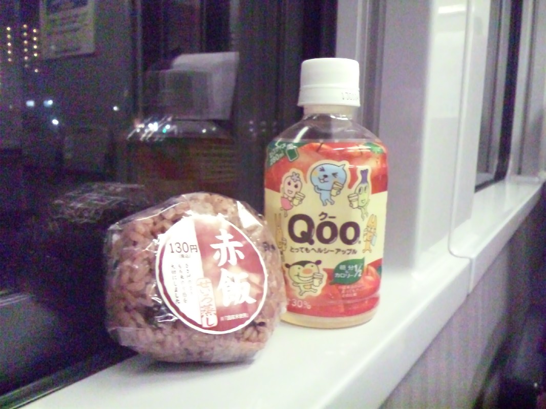 一応本日の夜食です(汗)ないよりあるだけマシです。一応、グリーン車なのでアテンダントから菓子は購入できますが、最近菓子をいただかないので、これが一番です。