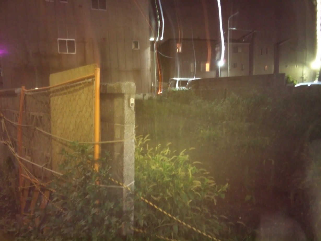 そういえば、前に拙ブログで紹介したゴミ書店の跡はこんな感じになっております。建物ごと撤去され、更地になっています。あのときのネコはどうなったろう。携帯のカメラだと光の流れを追ってしまい、一種の心霊写真となっております。塀に取り付けてあるインターホンを押すとなにかが出そうですね(笑)