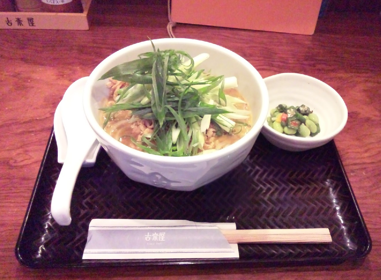 味ですが、後から九条ネギの攻撃に遭いました。でも揚の甘さがあり、辛味は分散しています。まぁ、美味ですが、個人的には自分で味が調節できるレトルトの方に惹かれています(爆)ちなみに小皿の和え物はオクラが入っていましたのであまりいただきませんでした。基本的にクネクネ、ネバネバしたものはいただきません。クネクネした、ネバネバした人間も嫌いです。