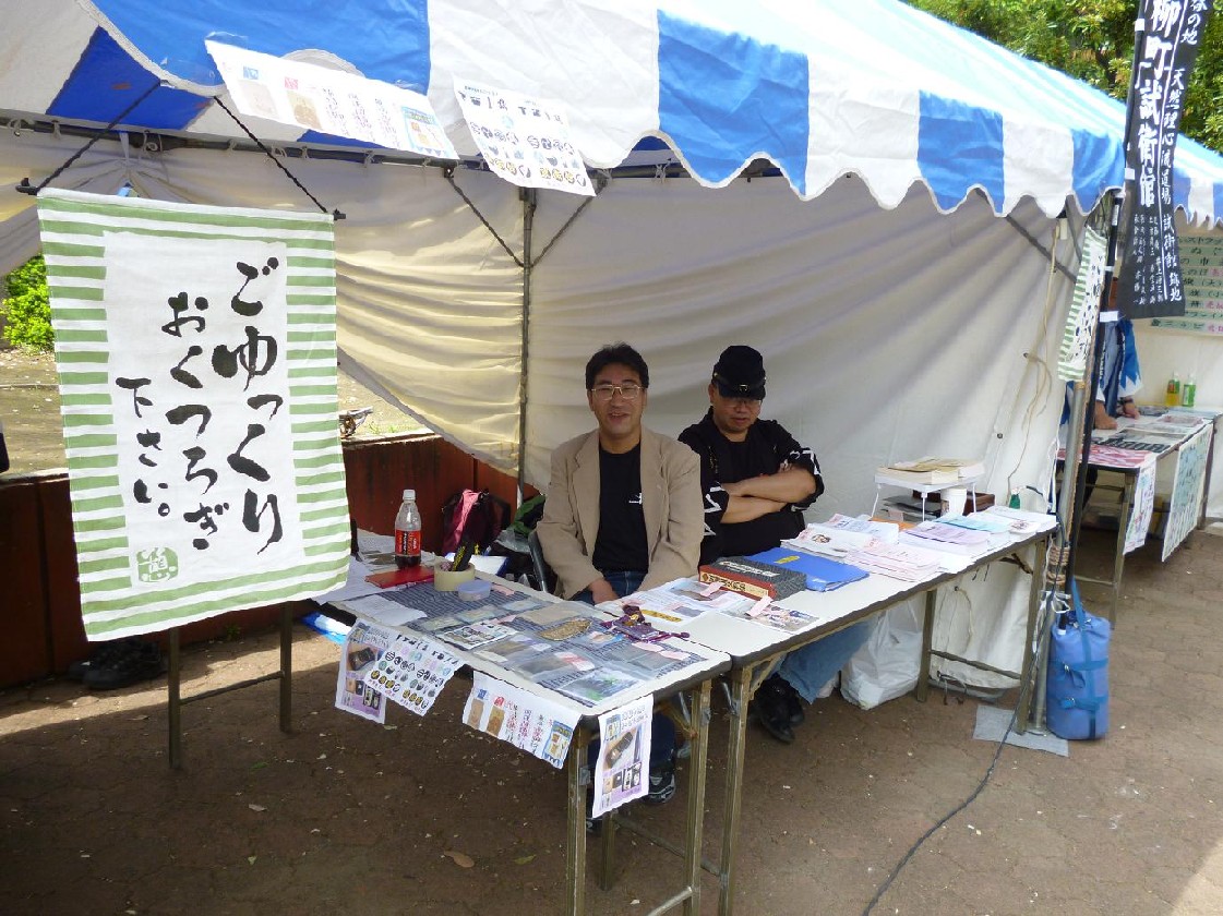 8:30、すでに共催団体、幕末ヤ撃団、日本史探偵団、尊皇筋肉はスタンバイしてやる気満々です。敵が来ようものなら一撃粉砕です(爆)実際、昨日の模様について電波系の方々の接近がなかったことを市谷の中居さんに話したら、通年通りわらわらしてたとの由。さすがに本能で危険を察知したのでしょう。その代わり、チャレンジャーが2名、お越しで、メンバーのなかで一番草食系に見えた方を選んで攻撃していました(当然、その後、当メンバーのイケイケ系に囲まれ退散したようです・汗)