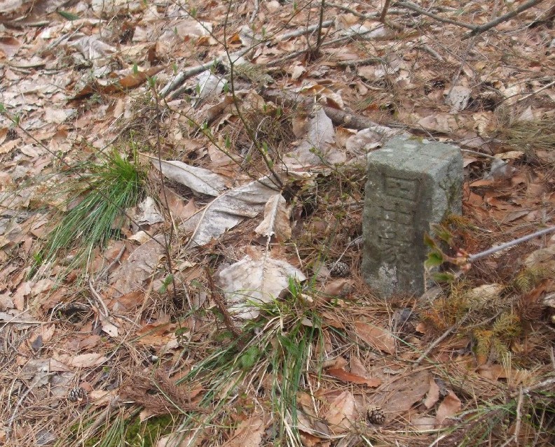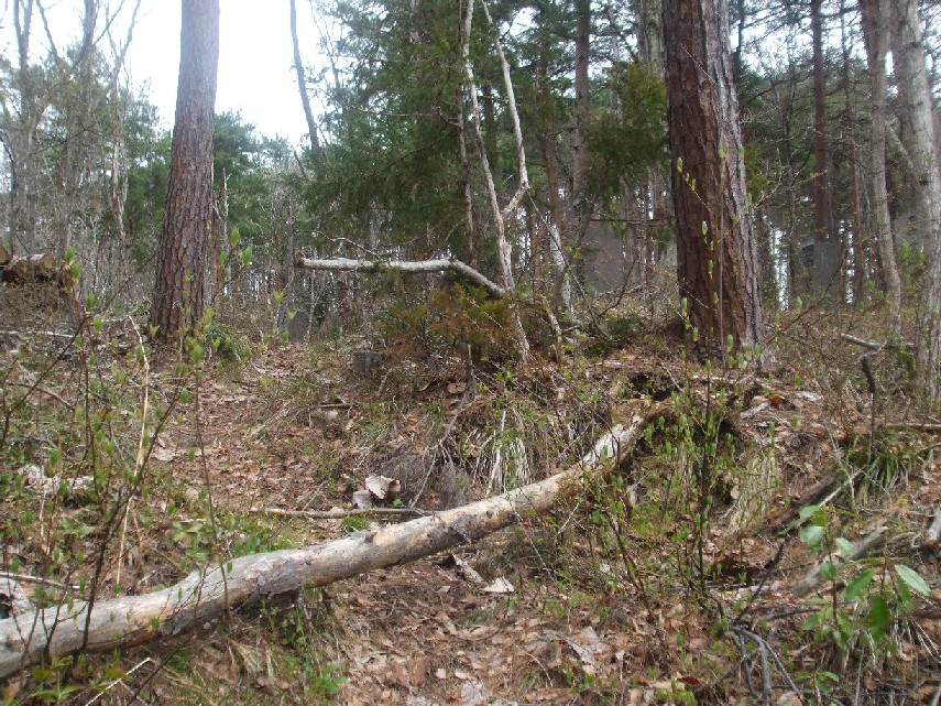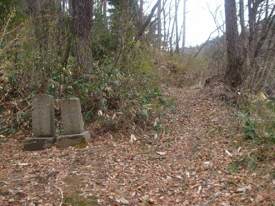 しばらく登ってもこんな感じで荒れてます。たぶん今年訪れた方はヒトケタもいないのではないでしょうか?運がよかったのは寒気のためか、蜘蛛がいません。で、ようやく頂上に近くなると墓碑が見えてきます。