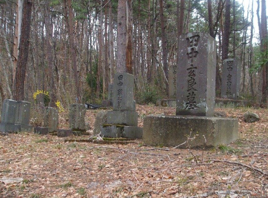 早乙女貢氏墓所を右に見ながら坂を登り、しばらく行くと左手に会津藩家老田中家墓地への入口があります。上がりますと代々の田中家当主等の墓所が存在します。ここに田中土佐の墓はあるのでしょうか?