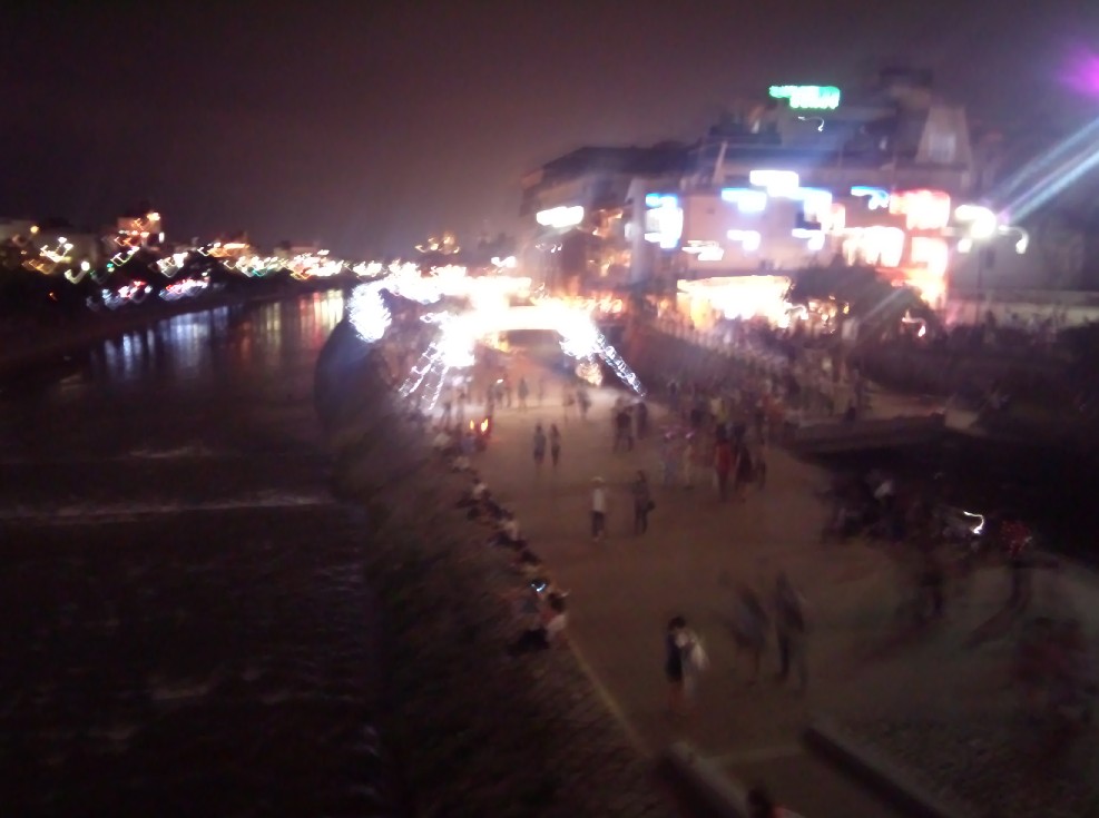 河原では七夕まつりといって、光の祭典が催されております。私は荷物もあるし、テロリストに血を提供するのは嫌なので遠慮。