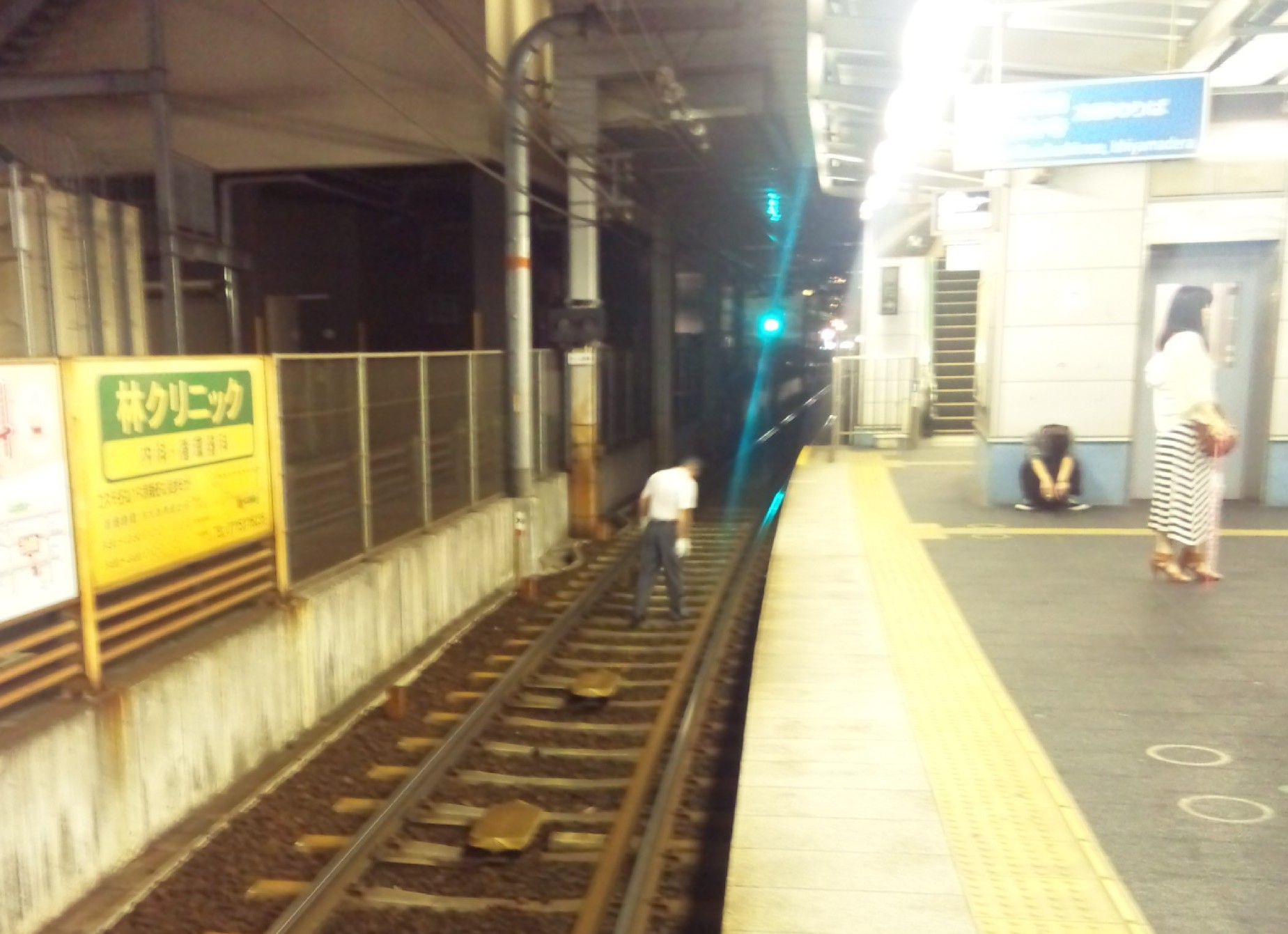 のどかなもので、終電ではないのですが、もう線路の掃除を行っています。