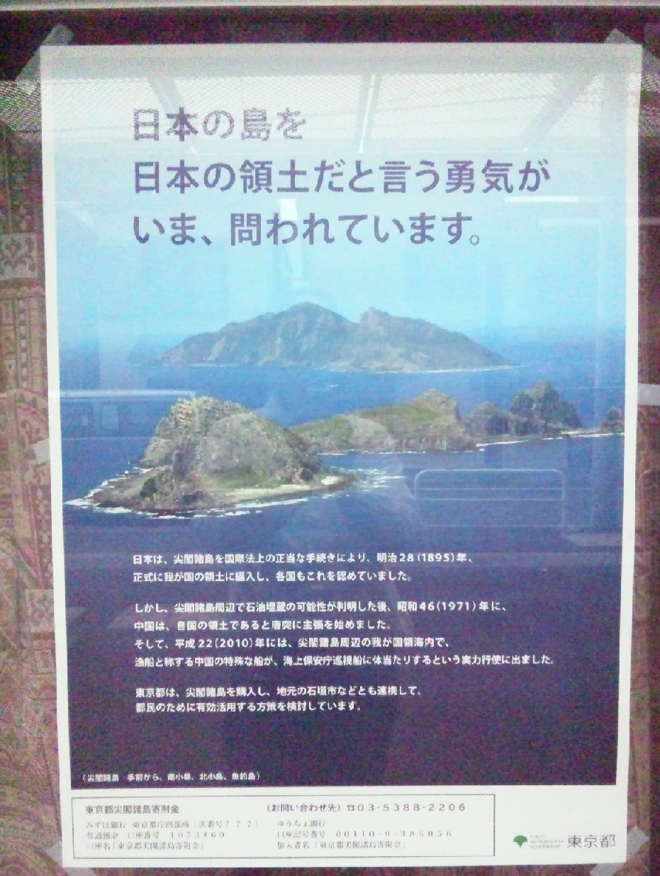 それと、マスコミのニュースにもなった尖閣諸島のポスターですが、都営地下鉄の駅に掲示されています。気になったので受付に聞きます。