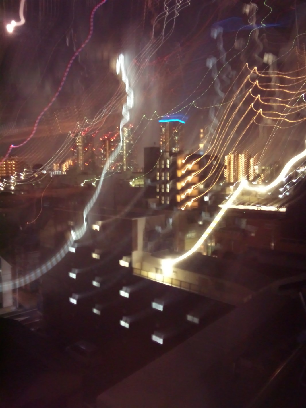 19:00、久々に千文会事務所へ。ホームパーティーに呼ばれましたので参加して参りました。夜景がとても綺麗です……が、このように拙携帯は光の軌跡を追ってしまうようで、心霊現象に写ります(汗)