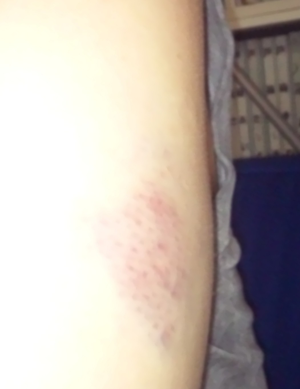 22:00、痣はこのように、一番大きな場所でもこの程度で済んでますが、転倒の後遺症で身体がショック状態になっていて執筆もできません。本日はあきらめます。