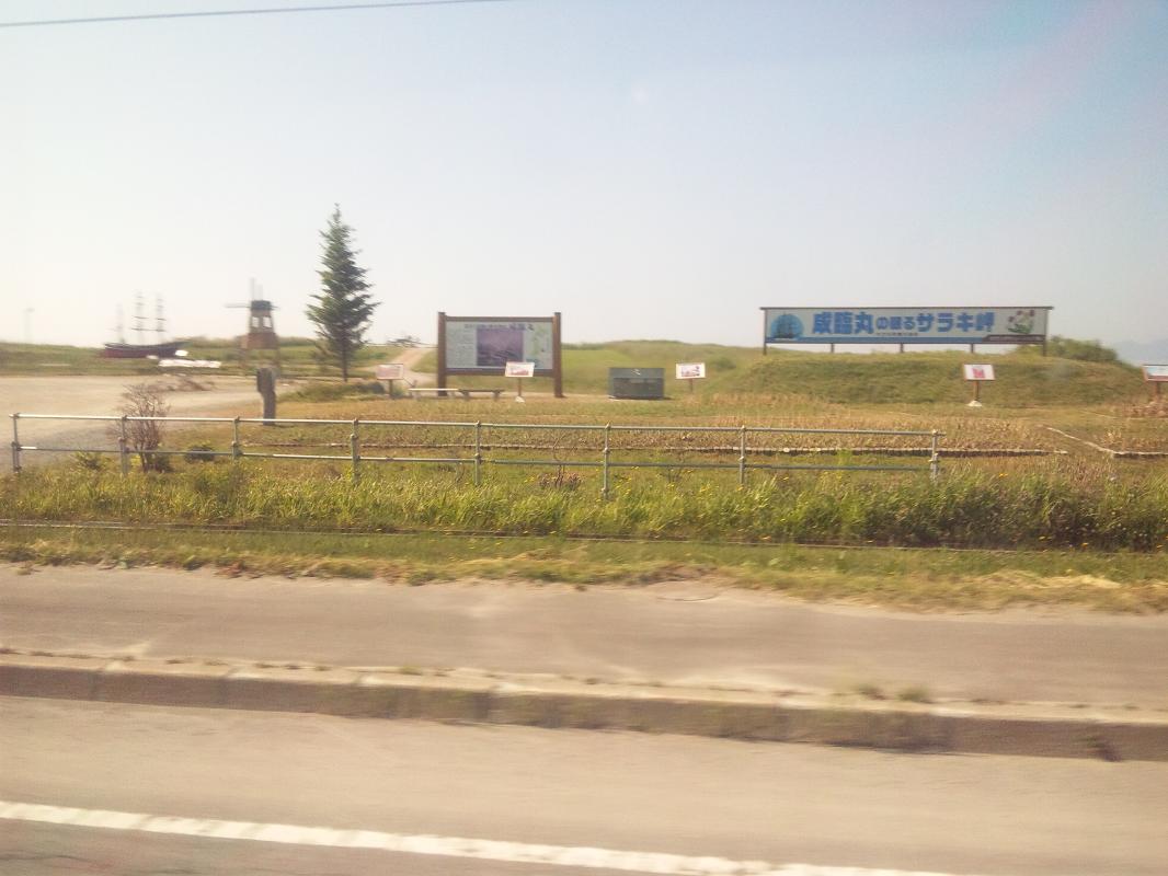 ほどなく泉沢にあるサラキ岬の咸臨丸終焉の地碑の場所を通過します。普段は長距離トラックの休憩地として利用されているようです。