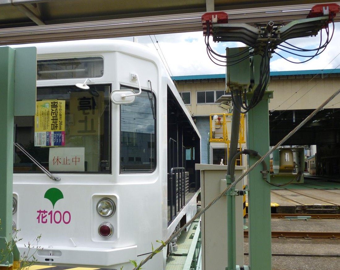 その後、裏に回ると花電車がトラバーサー?に載り展示されています。実は現役時代、一度も見ないで終わりました。昔は6000型でしたが、数年後にスクラップにされましたので7500型という車輌を改造しています。