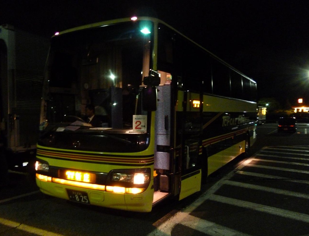 23:14、バスが到着。GWということで2台仕立て。私はこの2号車に乗車。先頭でしたがどうも乗り心地はイマイチ。これがJRと民間の違いなのかも知れません。