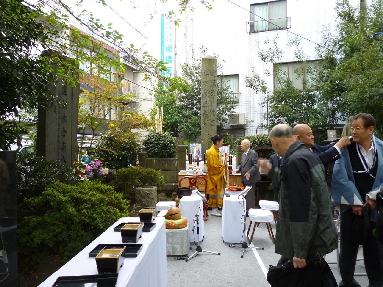 そんなさなか、10:30に家を出てベスパ号を駆って板橋駅へ。本日は近藤勇と新選組隊士慰霊祭が催されます。昨年は訳あって参加しませんでしたが、今年は横倉喜三次子孫の森さんと一緒に参列しました。