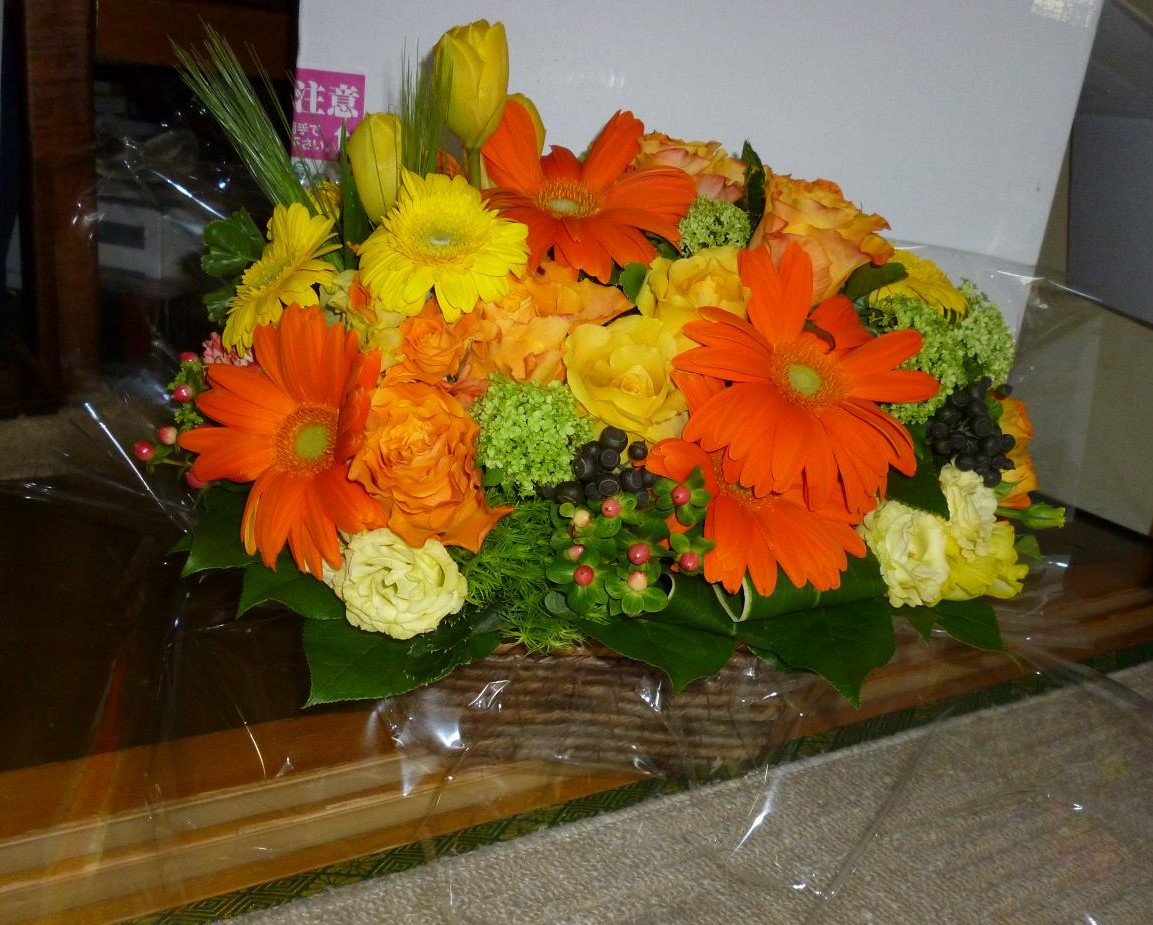 そして見ると、荷物が。友人から素敵なアレンジメントをいただきました。ありがとうございます。こうして1年を感じます。