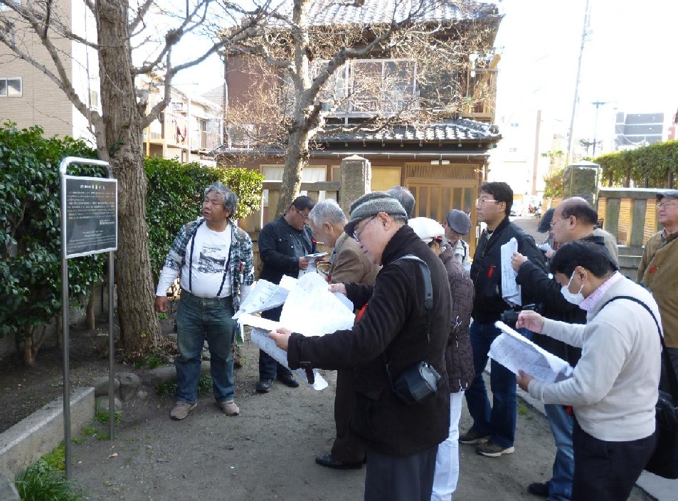 こうして一行が到着して合流しました。三囲神社は三井、三越の氏神で、ほか、隅田川に面している神社の特徴で、いくつも石碑があります。