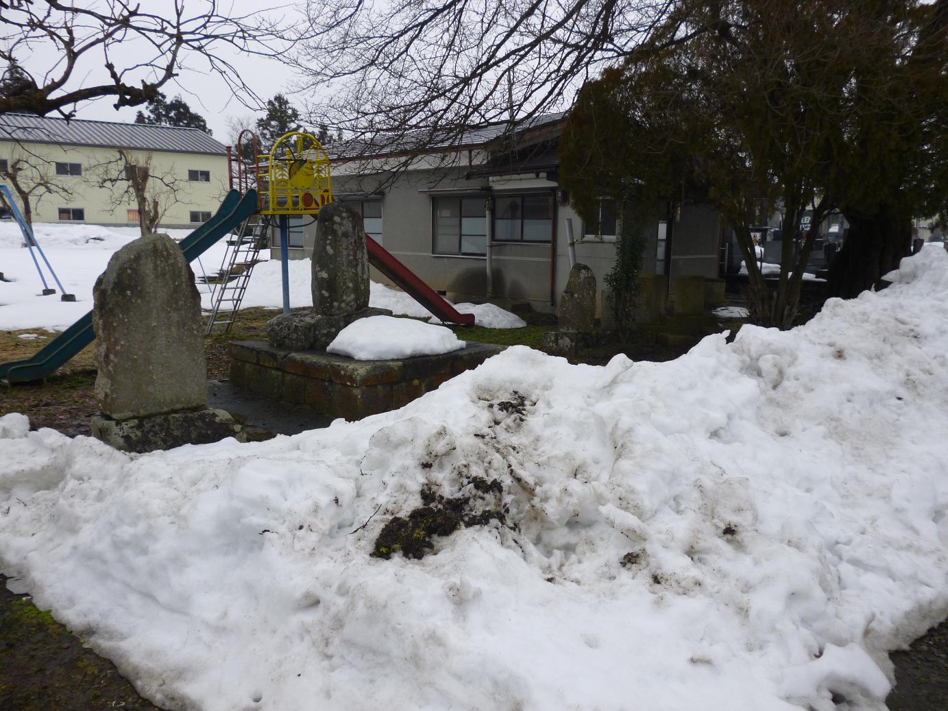 11:00、ナビに困らせられながら一ノ堰の山本権八墓所へ。南若松駅から近いところにあります。手前に積雪があり、一瀬要人の墓にも積雪が。