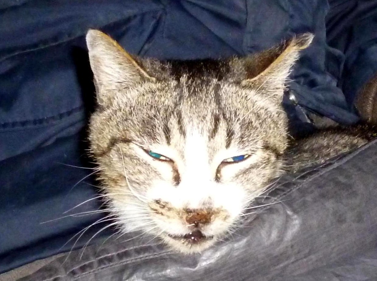 疲れると店主の膝に乗り、店主のネコ暖房となります。