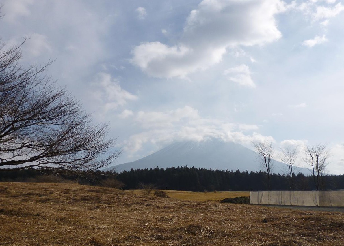 11:00、朝霧高原に到着。富士山は雲が下に来ていますがこれもご愛嬌。気温は1度。雪はなくとも冷え込みます。