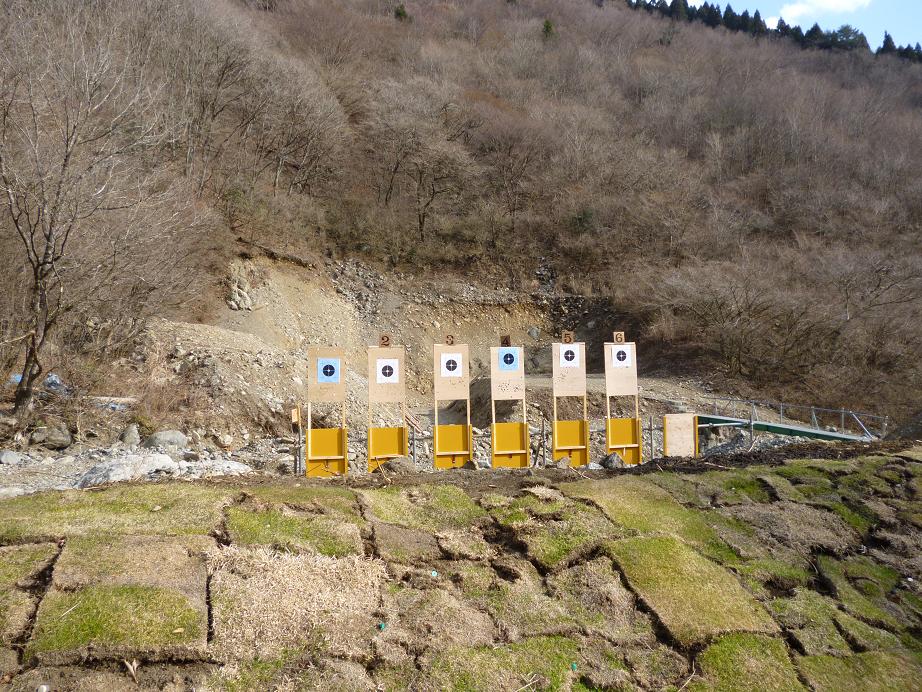 ちなみに的はこんな感じに見えます。50mあります。散弾ですので限界はあります。幕末でいえばゲベールのようなものですが、弾に工夫がありますので弾道はコッチの方が良いです。飛距離はゲベールと一緒です。