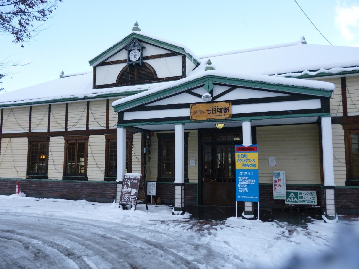 15:03、七日町到着。ここでバスを待ちます。外は雪が降っています。