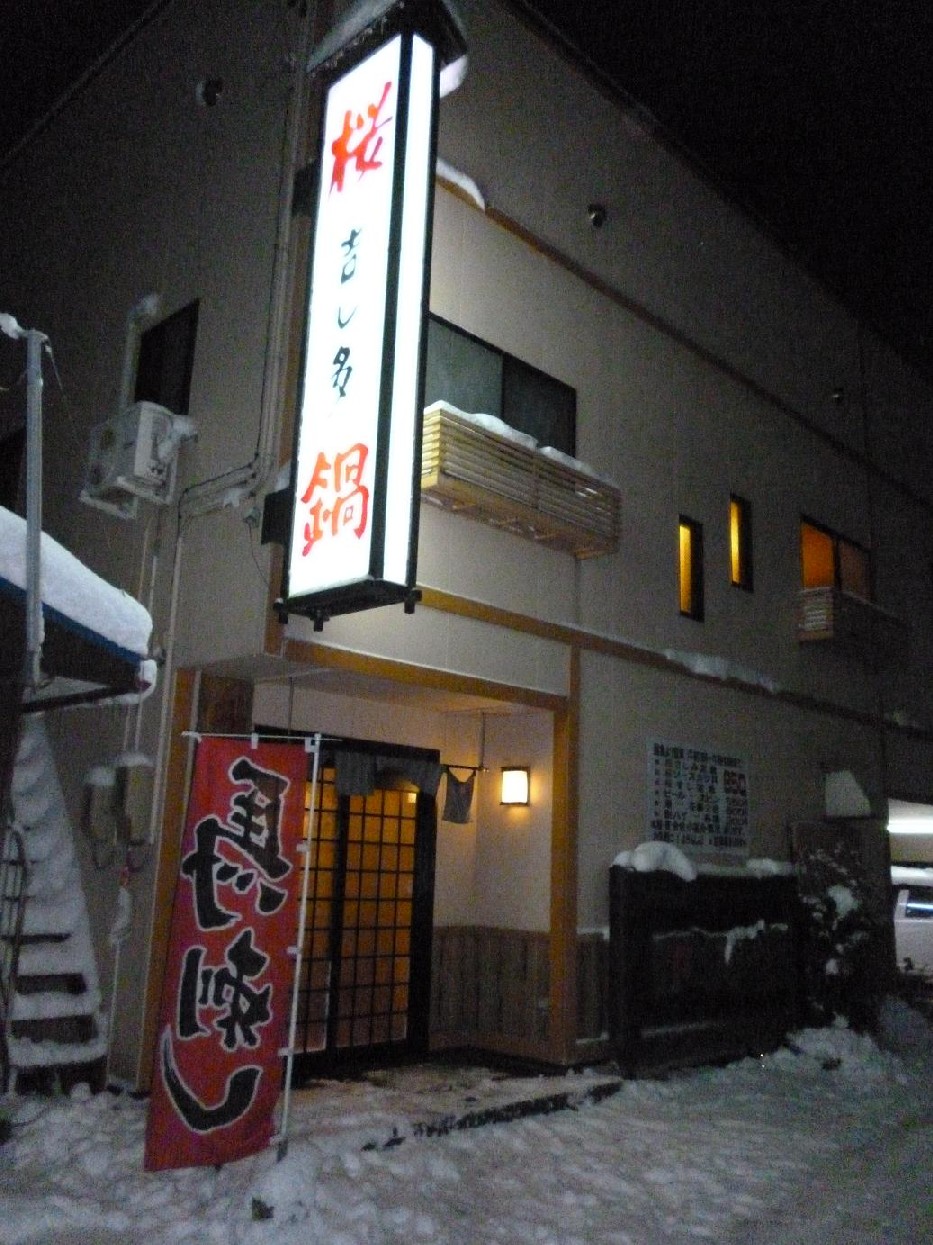 その後、市役所脇にある「吉し多」で夜食を。今回はソースかつを止める予定でしたがここのお肉は桜肉(馬肉)です。とても興味が沸いてしまいました。