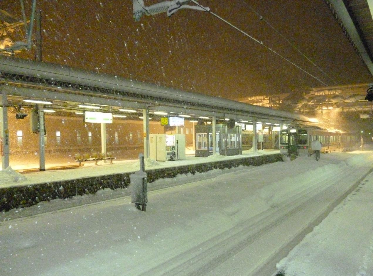ちなみに米沢駅のホームはこんな感じです。米沢から山形方面は鈍行が動いているとはいえ、雪で車輌が埋もれています(汗)
