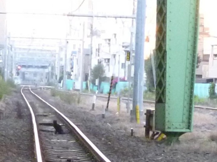 途中、踏切で1匹のネコが。やけにシュールでしたので1枚パシャリ。まぁ、プロ用ではありませんからこの程度の画像でご勘弁を。