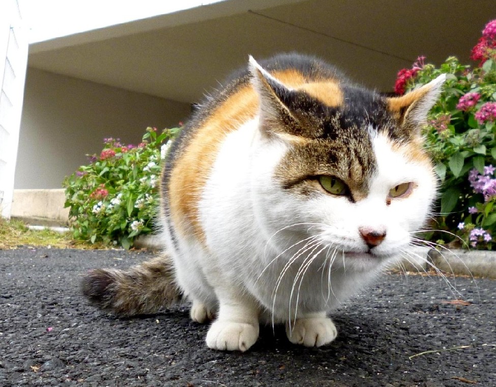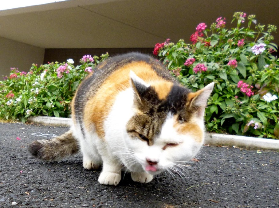 この方です(笑)階段の主です。キリリとしてますが、ねこ屋敷(笑)→上野公園と、ねこの匂いがするのでしょう?逃げません。で、またたび攻撃しますと、