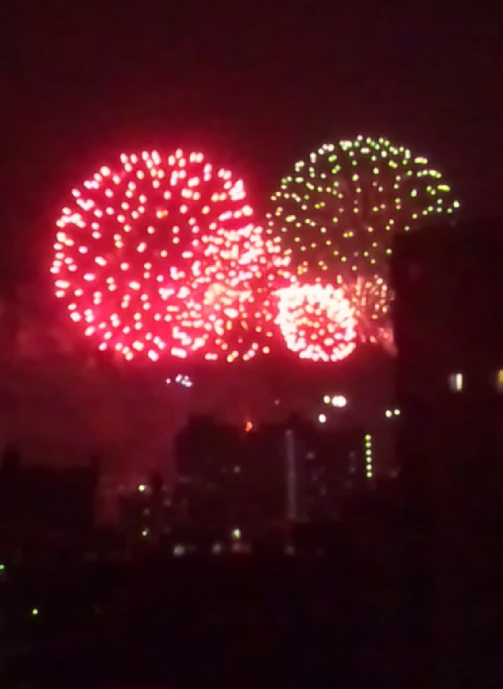 18:00、荒川土手で花火大会が始まりました。綺麗ですね。いったんは中止するはうだったのですが、一転開始されることになりました。少々時間が短縮されましたが癒されます。