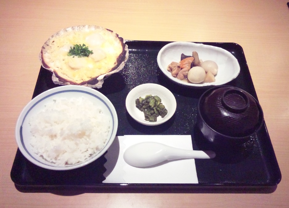 ここにある「つがる路」で貝焼き定食を注文。これが美味!ほたてを卵とじで味噌焼きするのですが、味も濃くなくホタテの風味も出て良いです。それで850円は最高です。