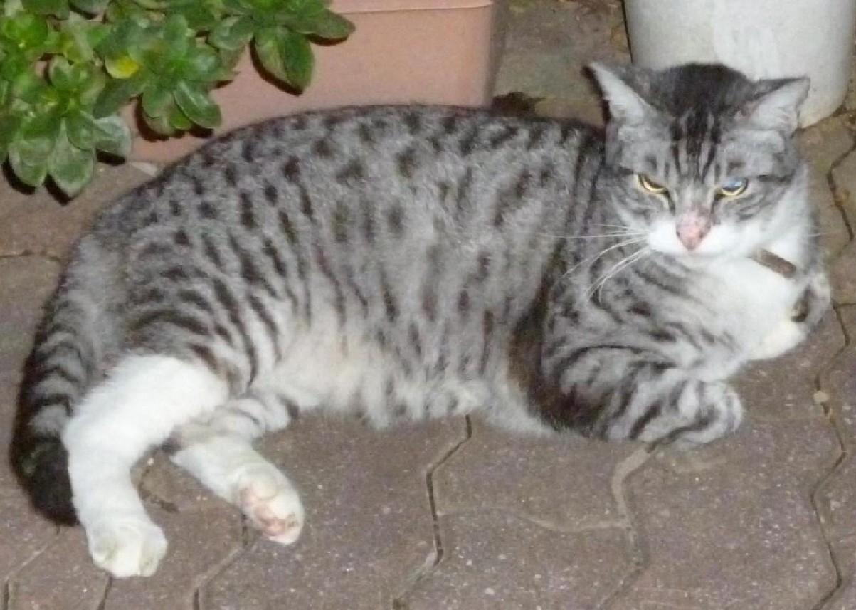どうも今年は熱帯夜が多いため、ネコも涼んでいるのが多いようです。機嫌は悪そうですが、ドく気はなさそうでした。さすがに触るのはあまりしないので夜景モードで撮ってみました。意外に最近のデジカメは進化しているようです。